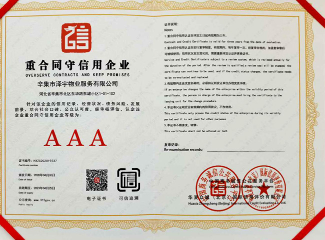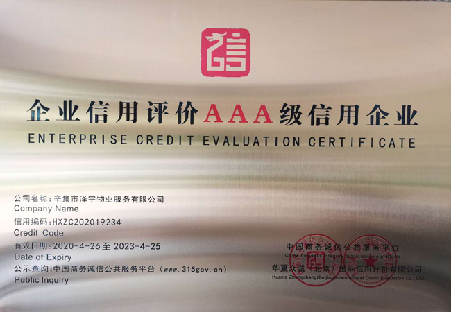 企業信用評價AAA級信用企業
